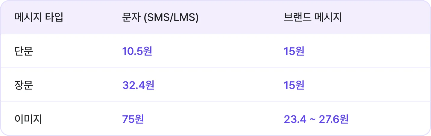 다른 메시지 채널 대비 브랜드메시지의 장문과 이미지형 단가가 정말 매력적이에요. 제한된 예산 안에서도 효과적인 메시지와 성과를 낼 수 있답니다.
