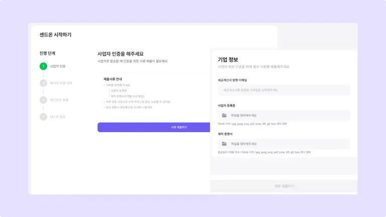 센드온 SDK를 사용하려면 인증된 사업자 계정이 필요합니다.