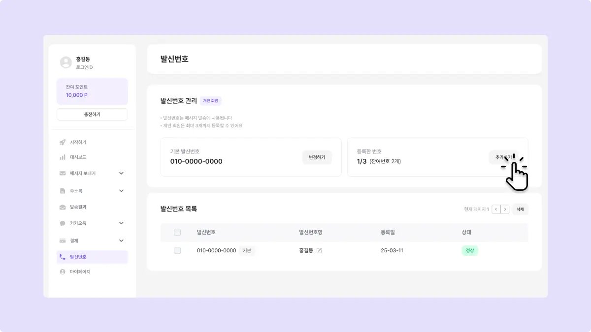 등록되지 않은 번호로는 발송이 불가하니 꼭 사전에 등록해주세요.