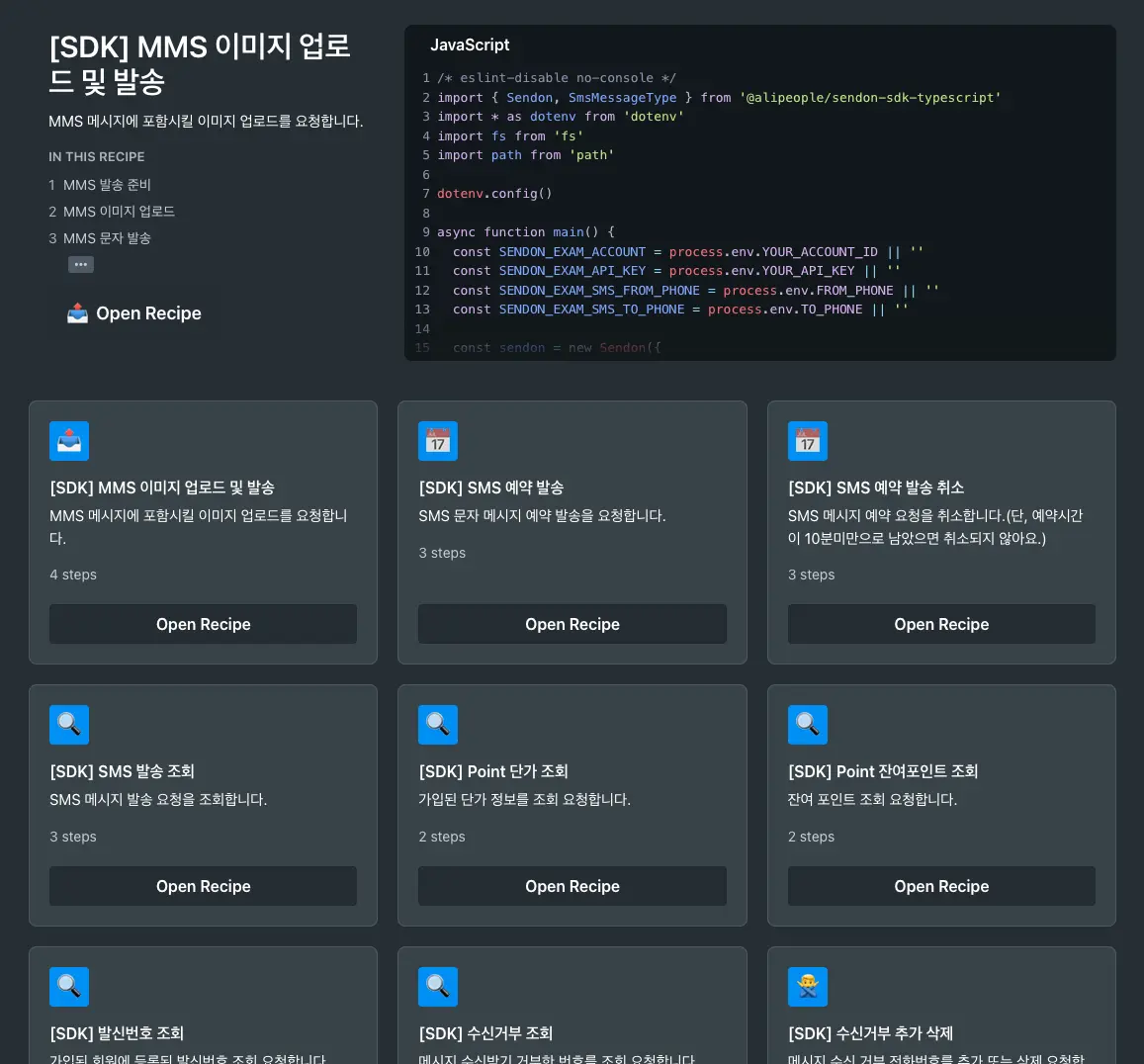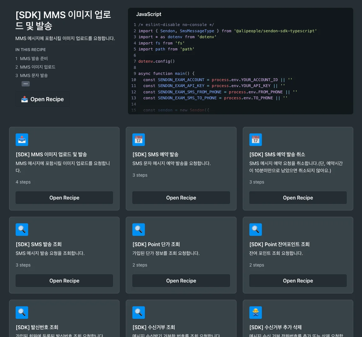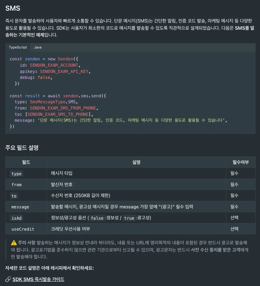 SDK 문서에는 복붙하면 바로 동작하는 코드까지 제공합니다.